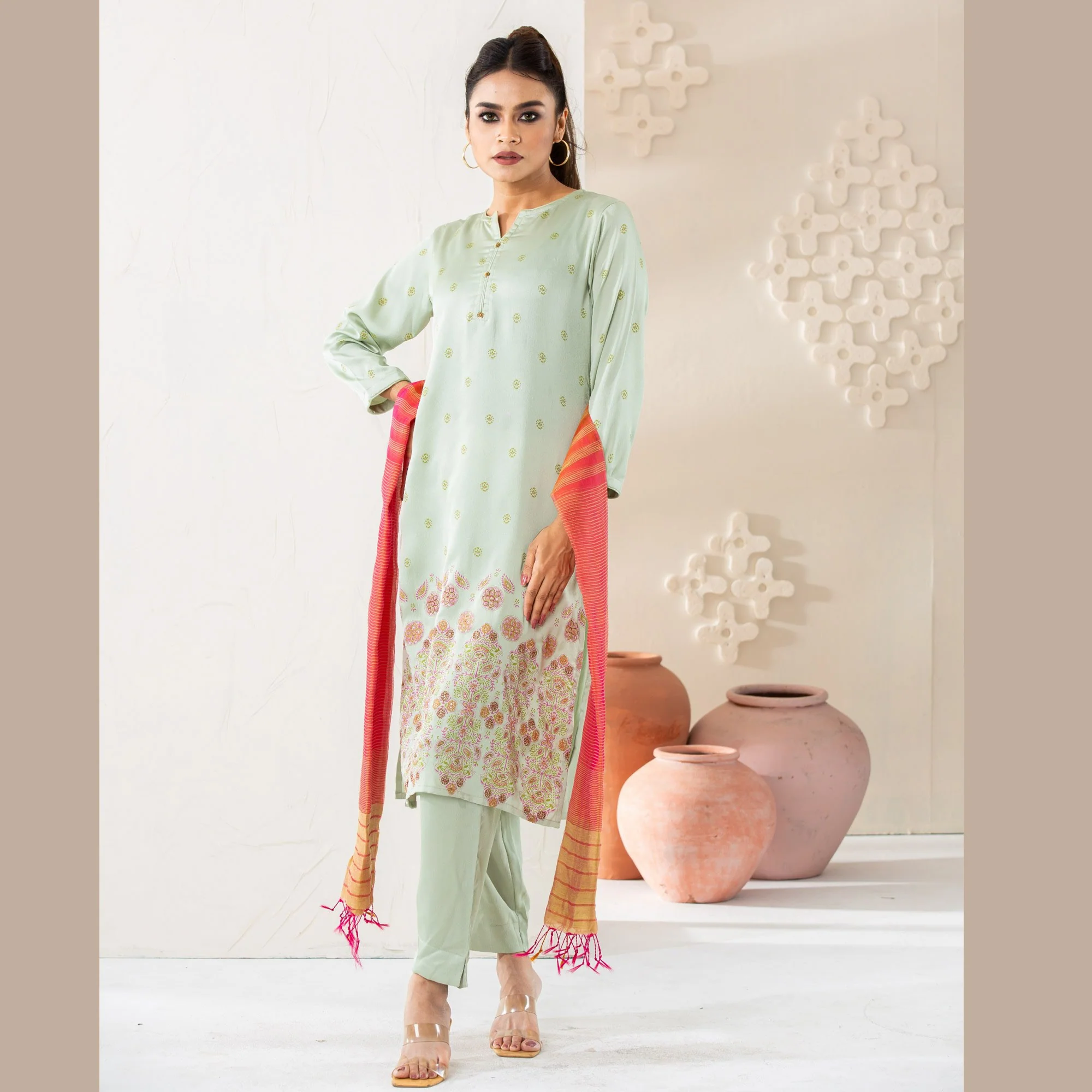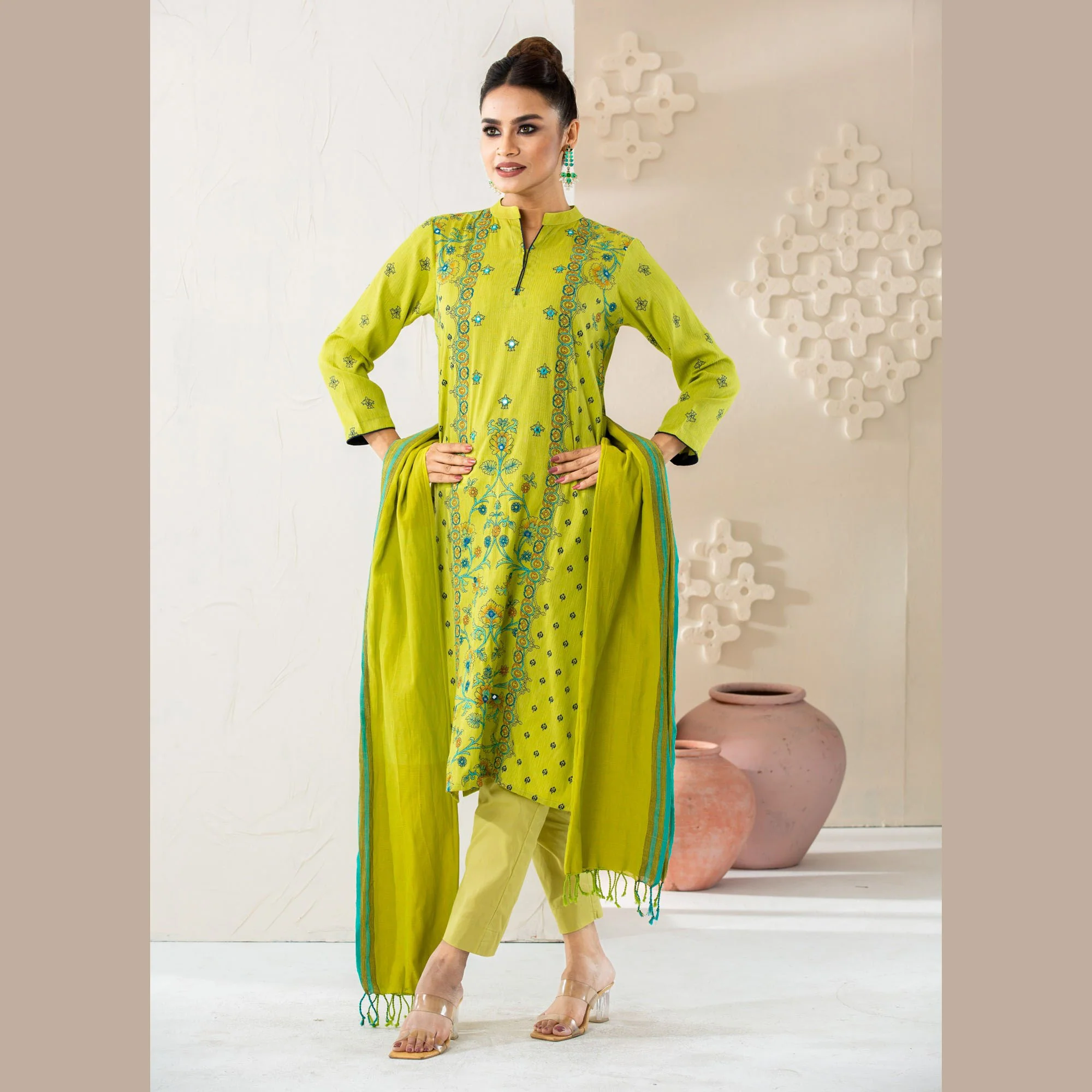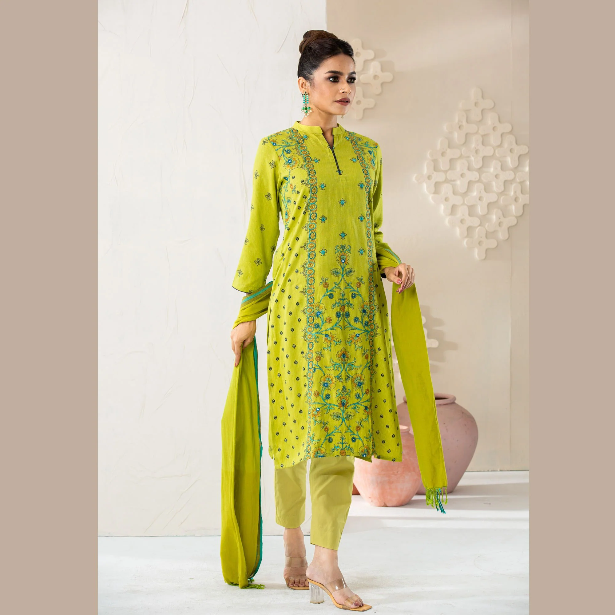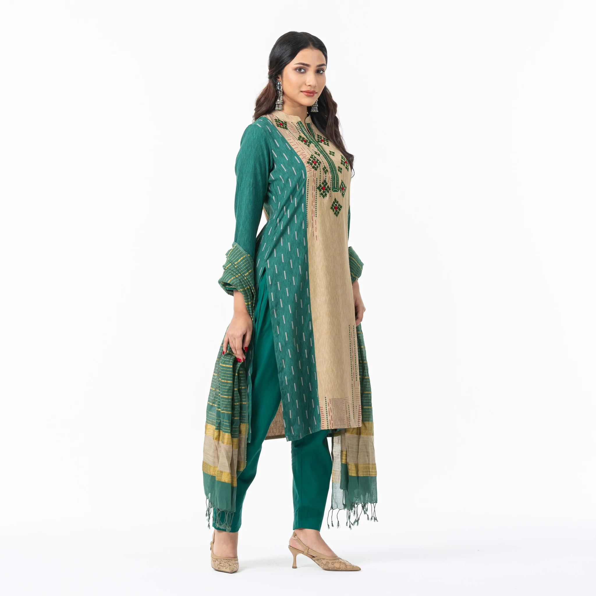 Womens Ethnic Green 3-Piece Set