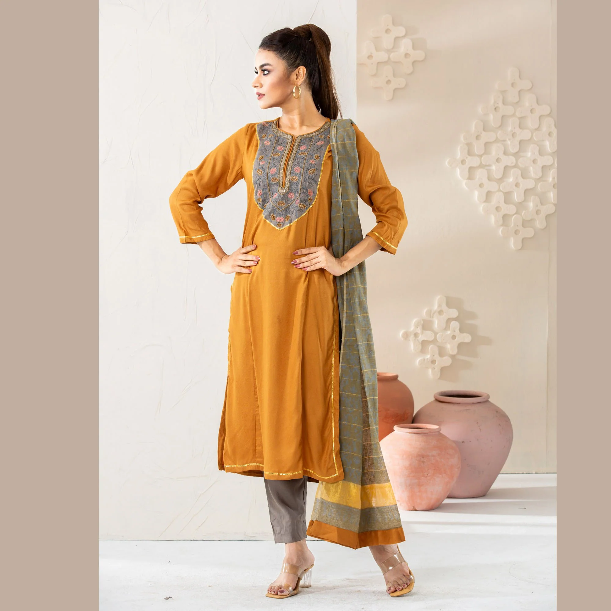 Womens Yellow Ochre Ethnic 3 Piece Set